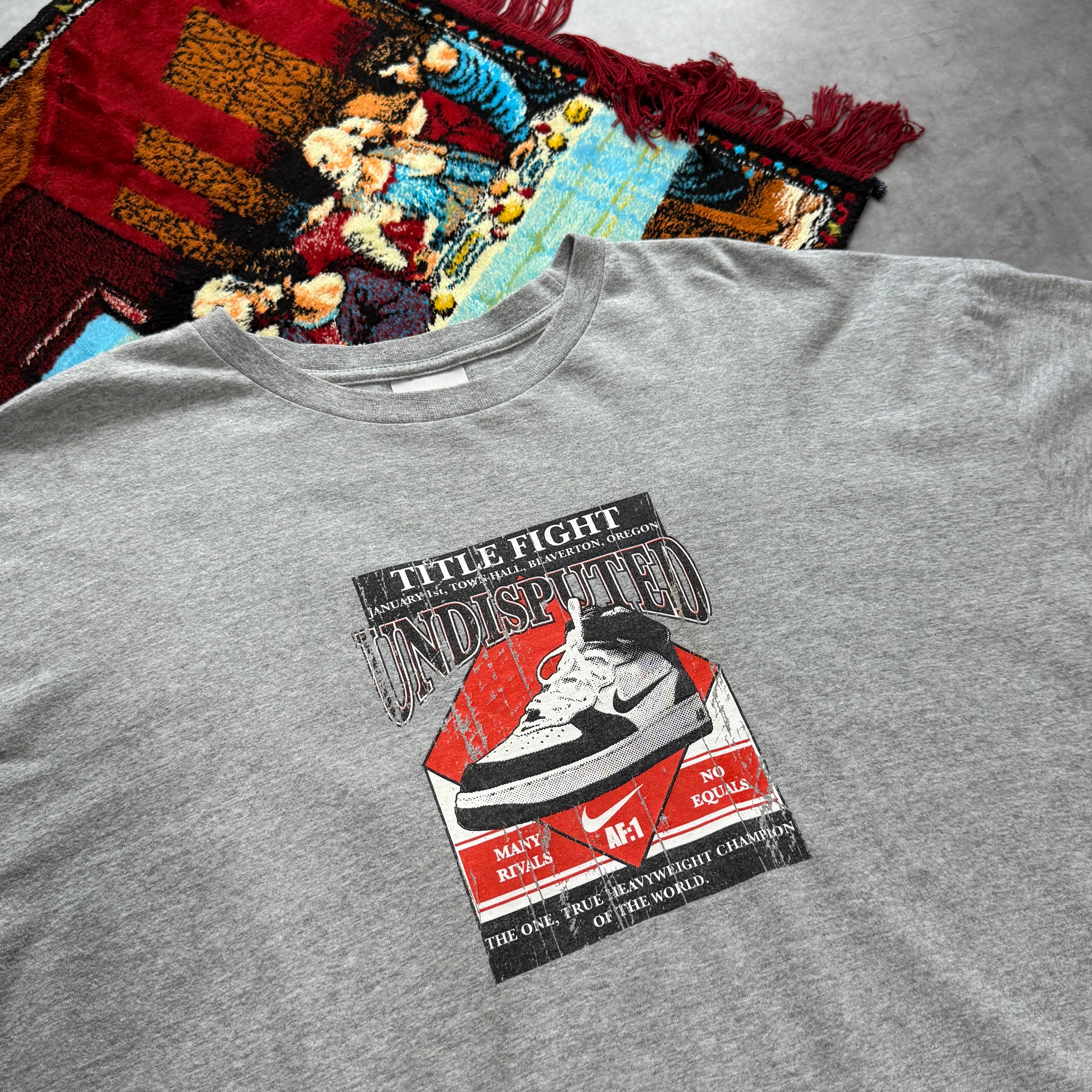 ボクシングの試合告知ポスター風のデザインで、“TITLE FIGHT / UNDISPUTED” の文字とともにAF1がセンターに描かれています。